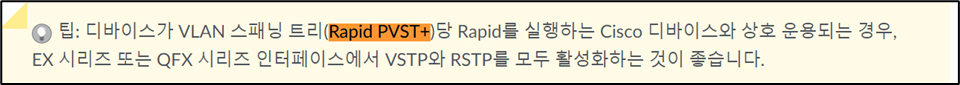 “VSTP RSTP는 디바이스에서 동시에 구성할 수 있는 유일한 스패닝 트리 프로토콜니다.”