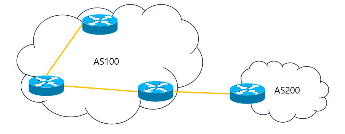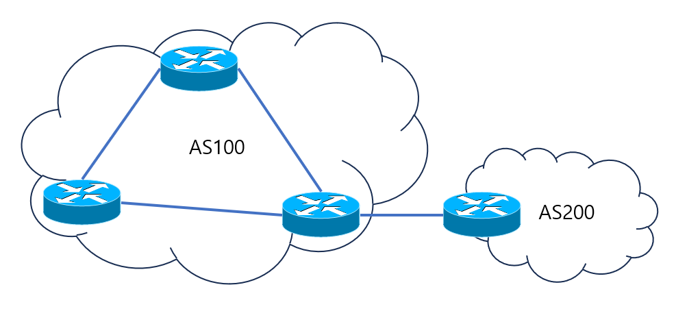 EBGP로 받은 정보는 IBGP로 전달하기 때문에 풀매쉬 구성을 통하여 AS200의 정보를 받을 수 있다.