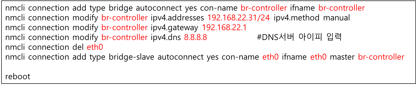 * 네트워크 매니저(nmcli)을 사용하여 브릿지 설정