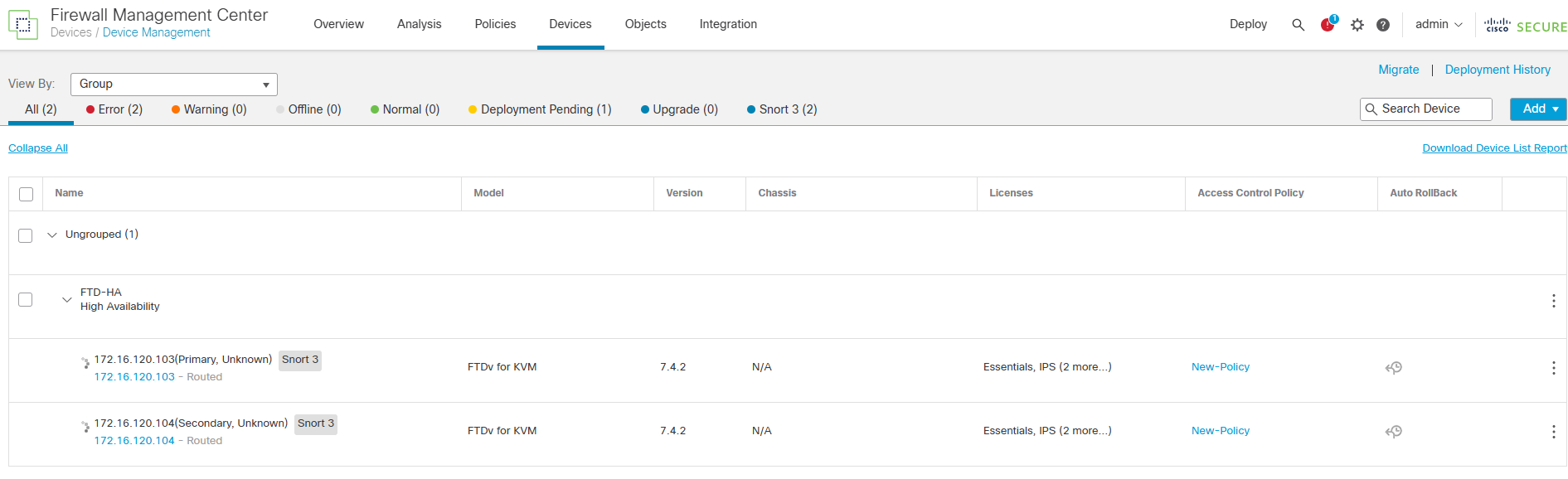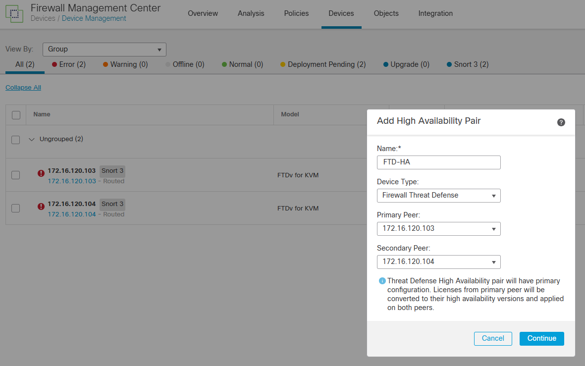 HA 클릭 FTD-HA이름으로 HA구성을진행합니다. YES클릭