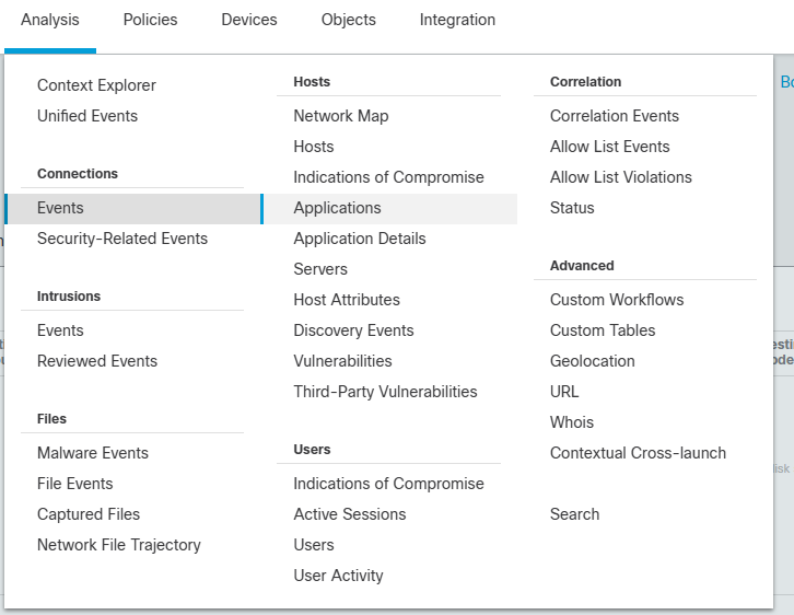 - FMC의 모든 유형의 이벤트(연결, 침입, 파일 등)를 단일 화면에서 확인하고 관리할 수 있는 옵션.